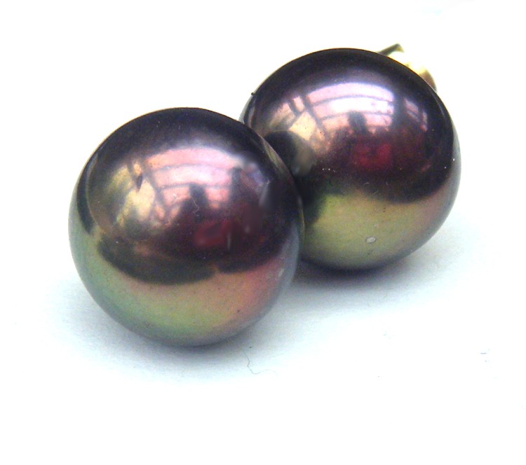 Black 12-12.5mm Pearl Stud Vermeil Earrings >Black 12-12.5mm Pearl Stud Vermeil Earrings
