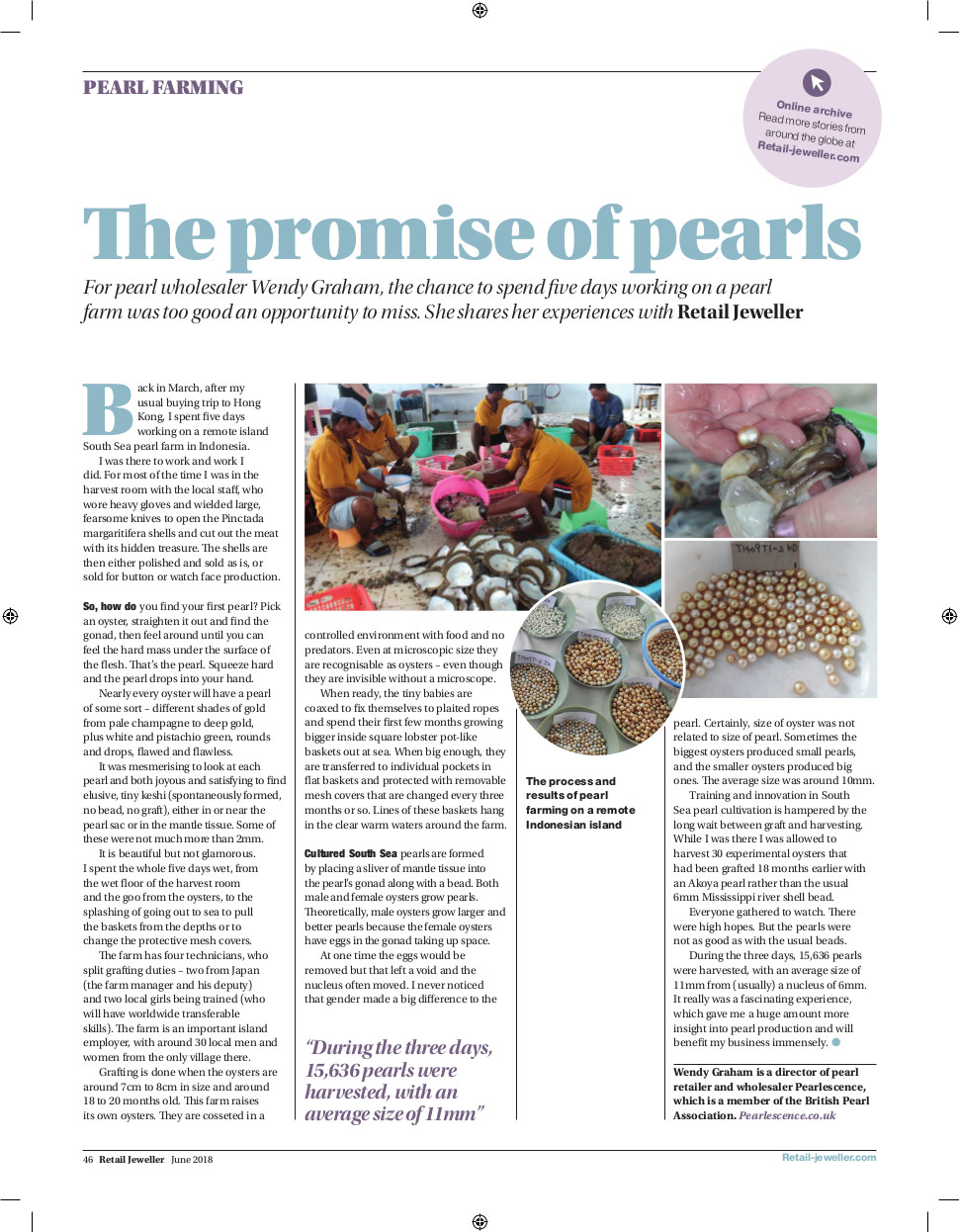 The main problem with training, indeed with any innovation or change in technique, in grafting with south sea pearls is that the time between carrying out the operation and the harvest, when you find out if the idea is good or the technique is sound is 18 month. Every technician takes copious notes of what they have done all the time, but it is a long time to wait..