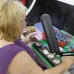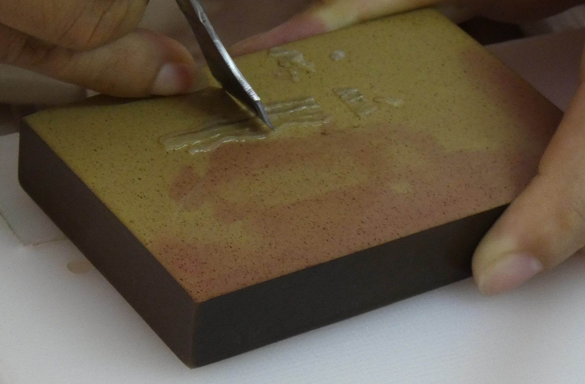 1mm pieces of selected mantle tissue – the tissue which secretes nacre – being prepared for implanting