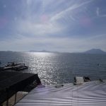 These are the visible manifestation of the farm – the lines of buoys marking the suspended baskets of pearls, busily feeding, excreting, making pearls