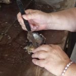 Some of the oysters are selected out at this stage as possible donors. These shells will be more carefully opened and the pearl inside extracted carefully. It will be scrutinised for quality and size – colour, lustre, clean surface and is it over 7mm. The oysters which have produced such pearls are used to provide donor mantle tissue for the next generation. The obvious flaw to this is that, of course, the donor tissue inside the oyster which has produced the pearl is not related (except distantly) to this specific oyster, but it is reckoned – practically – that a pearl is 80% donor mantle and 20% host. And this process looks for the best and healthiest hosts – and thus to optimise the general stock on the farm. While the donor tissue secretes the pearl it is the host which keeps the donor tissue alive.