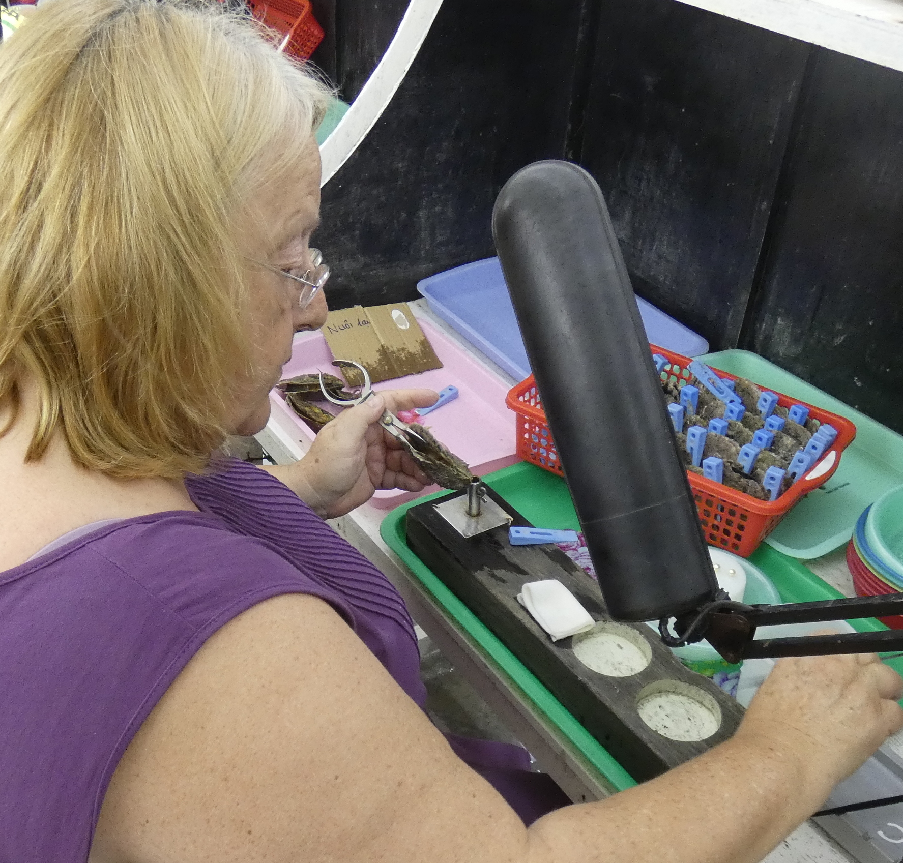 And finally, they let me not only open some oysters and harvest the pearls (I was surprised at how soft and easily cut through the shells are) but sit and assess for mantle tissue donors – awesome responsibility.