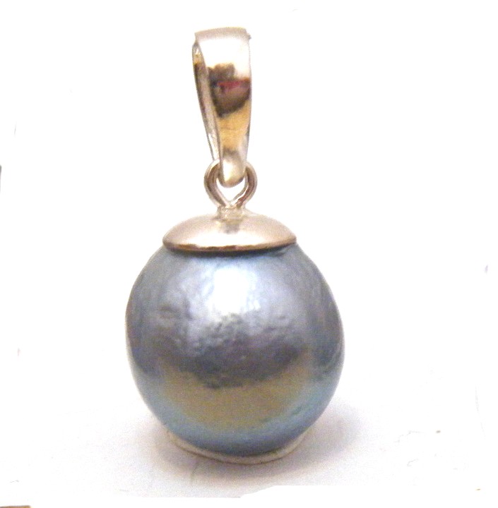 pen 13 blue ss round silver 4766 ← Previous A pendant or enhancer is a great way to get started with blue south sea pearls. (This is a more classic simple round pearl if you aren’t a poke-fan) round blue pearl pendant